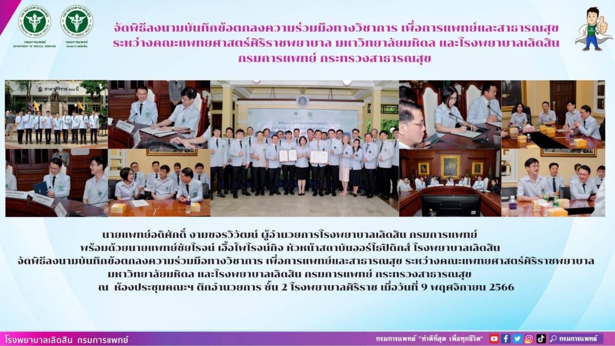 พิธีลงนามความร่วมมือทางวิชาการระหว่างคณะแพทยศาสตร์ศิริราชพยาบาล และสถาบันออร์โธปิดิกส์ โรงพยาบาลเลิดสิน (9/11/2566)